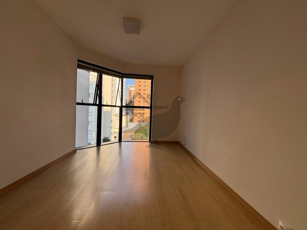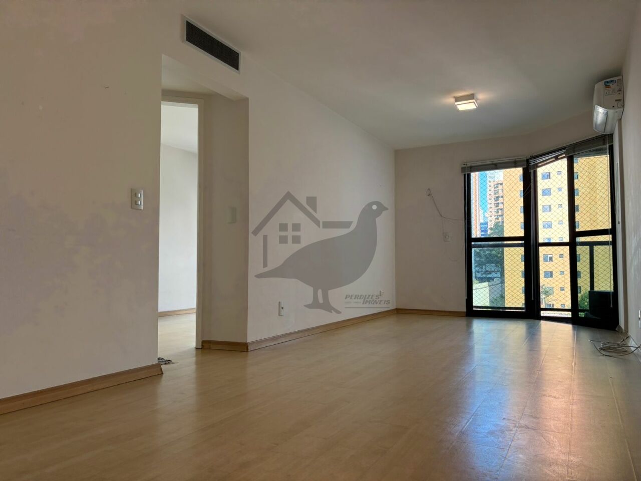 Ambiente elegante com piso em tacos, ar-condicionado central e aquecimento a gás.