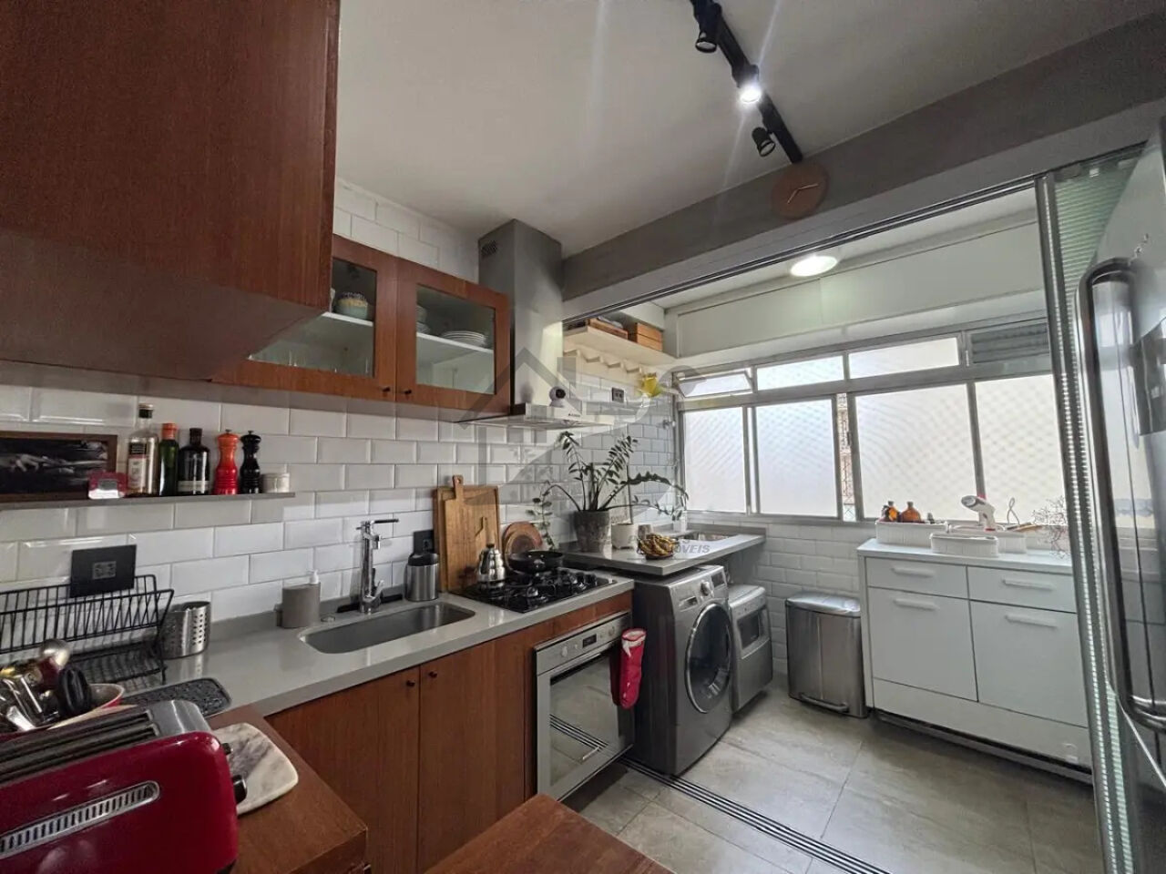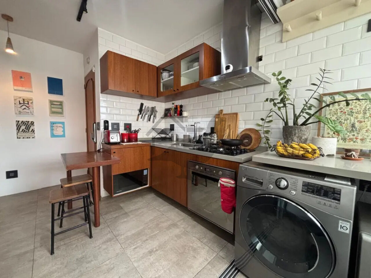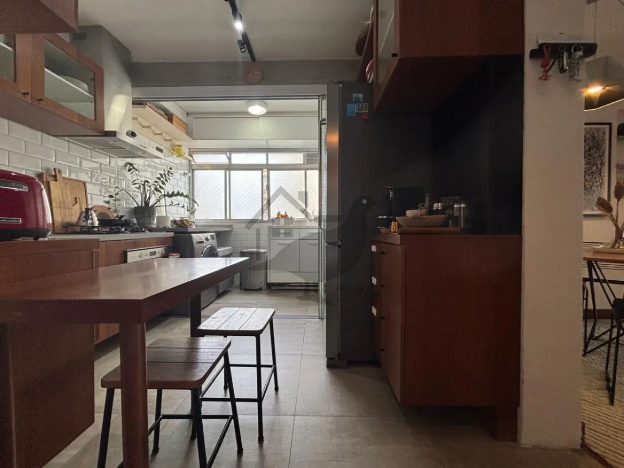 A cozinha moderna e funcional se integra harmoniosamente à área de serviço organizada, enquanto a sala ampla para dois ambientes cria o cenário perfeito para receber amigos e familiares com estilo e conforto.